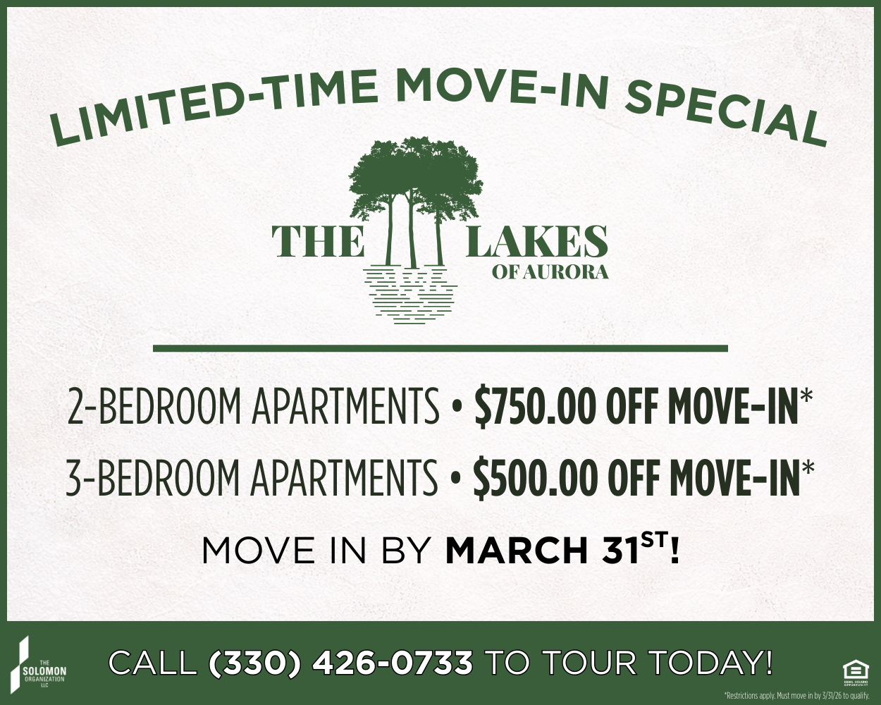 Up to $750.00 Off Move-In at The Lakes of Aurora